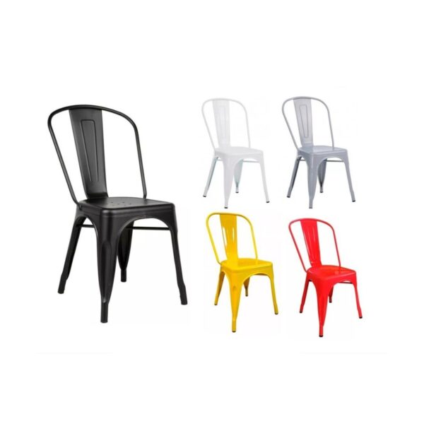 - Debido a su construcción metálica, la silla Tolix es muy resistente y puede soportar 500 lbs.